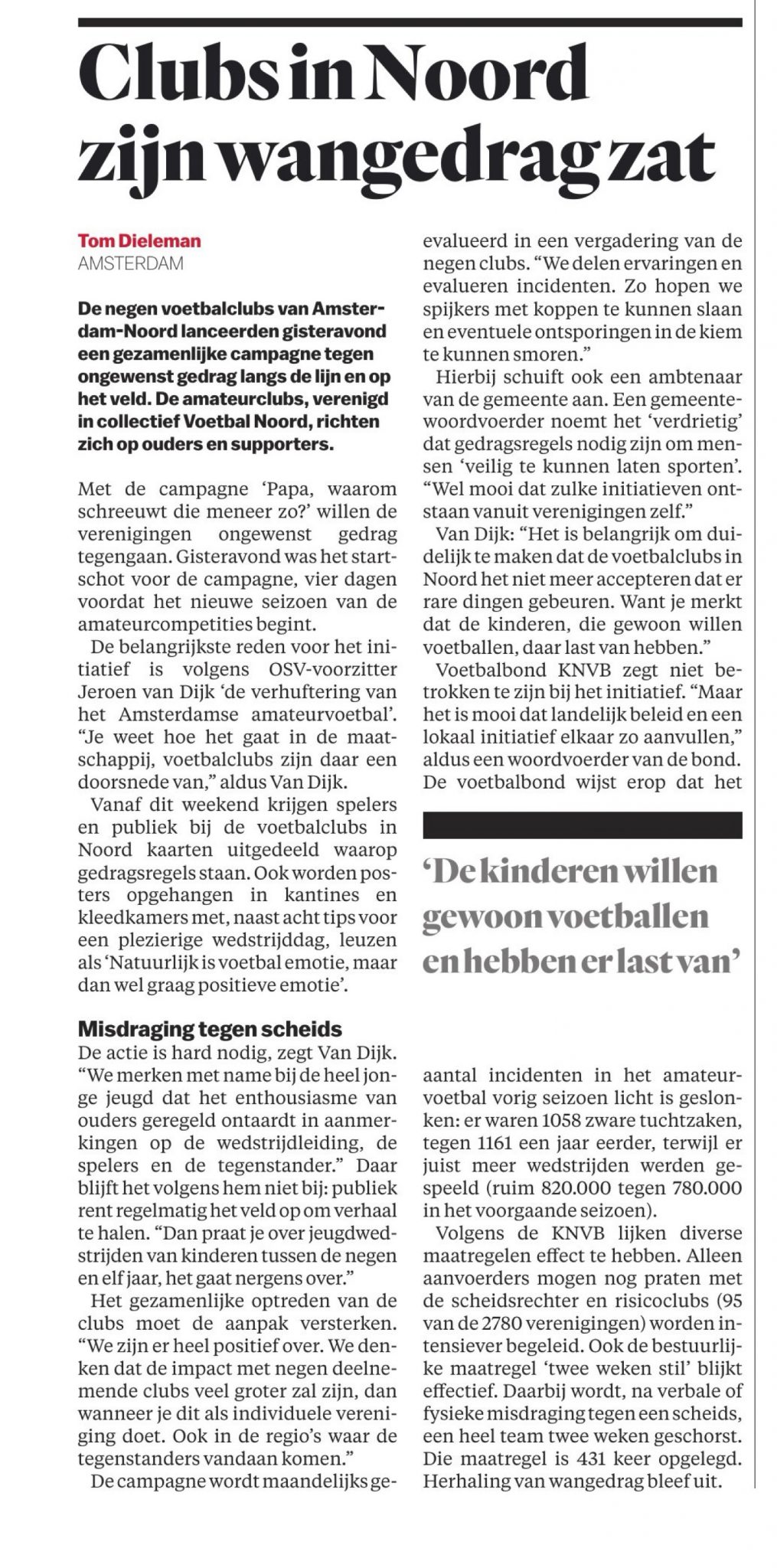 Op dinsdag 26 augustus lanceert Voetbal Noord de campagne tegen ongewenst gedrag op en langs de voetbalvelden: “Papa, waarom schreeuwt die meneer zo?”