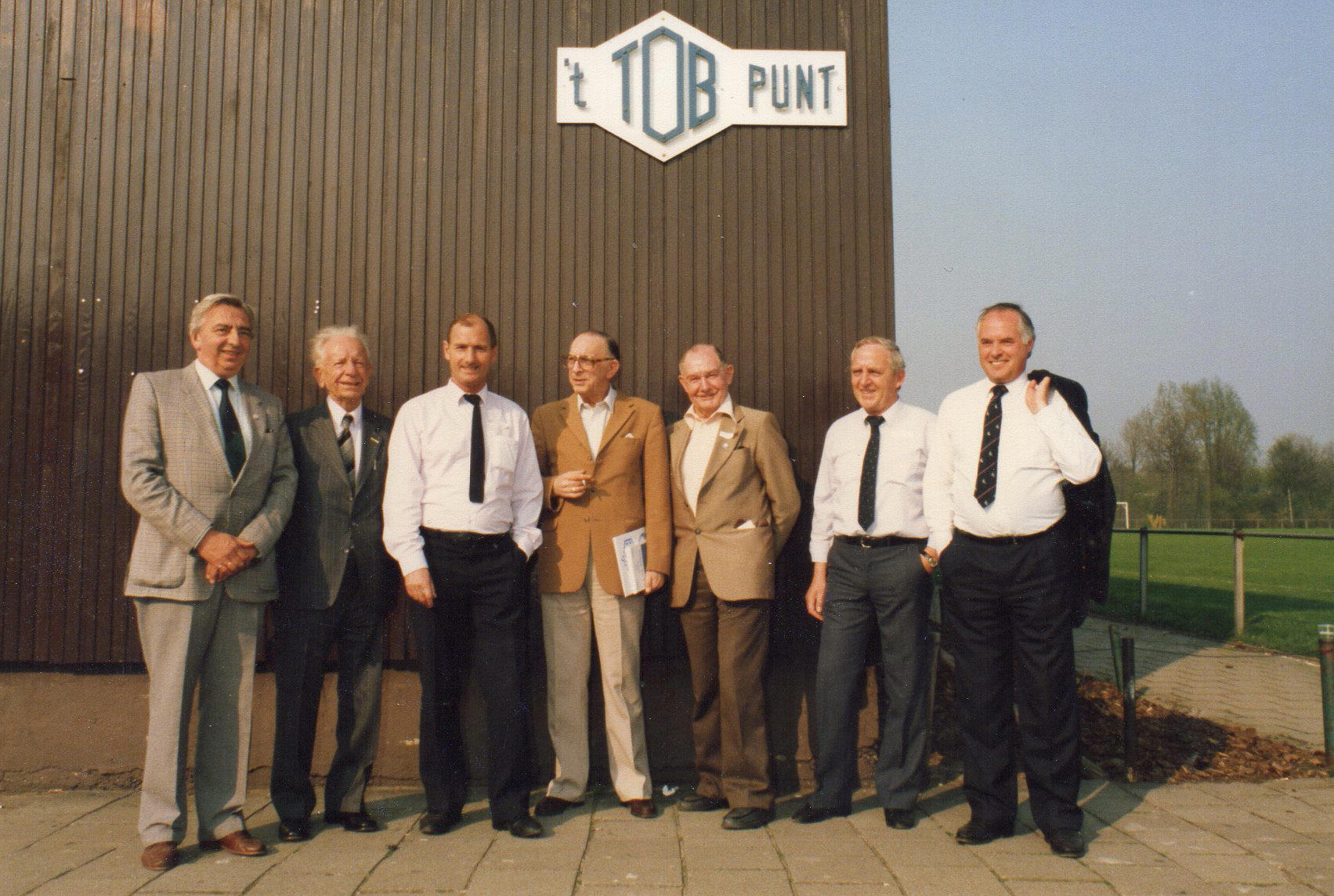 Foto hieronder: zeven TOB-voorzitters tijdens een TOB-reünie in 1987. Van links naar rechts Fritz Rooth, Jef van Lingen, Ed Peperkamp, Jan Bank, frater Martialis, Gerard van Dijk en Loek Groen.